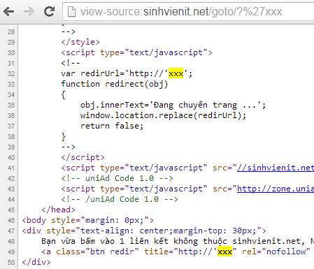 Vốn là tay thích săn lỗ hổng, tớ nghĩ thoáng qua trong đầu… “Không biết lão Lai dùng meta refresh, javascript hay PHP header để chuyển hướng nhỉ?”. Nghĩ vậy, tớ liền nhanh tay copy link và thêm “view-source:” vào đầu.
